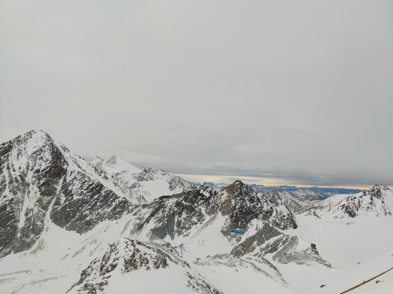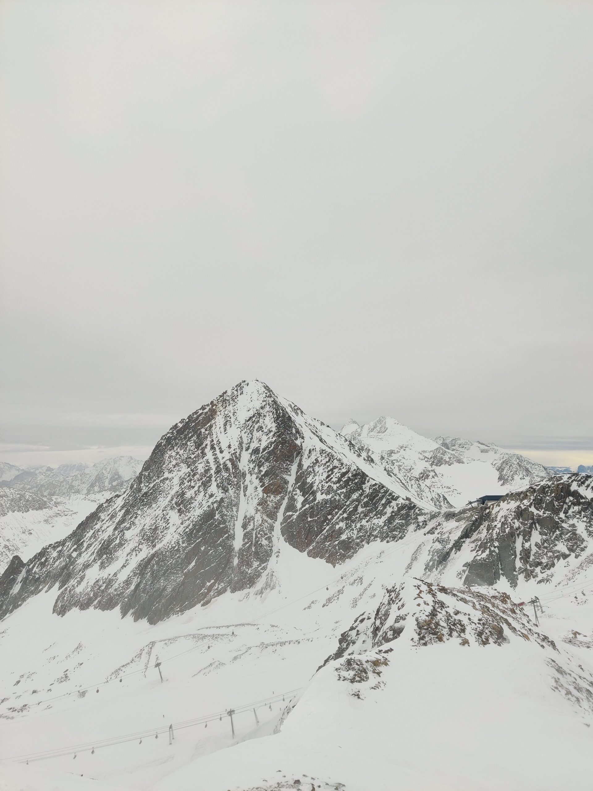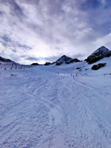 It was a very windy day, bitter cold and quite cloudy, occasionally the sun would come out which was great as it would help with the visibility of the different snow terrain. Taking the car to the top we would pause to take in the incredible views out over to the Dolomites in Italy and over to Zuckerhütl which is the highest mountain in the Stubai Alps, its name meaning sugar loaf in English derived from its conical shape and the way it holds the snow making it look like sugar.