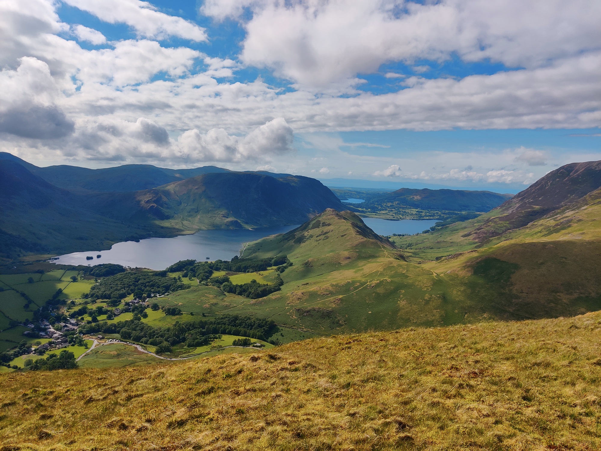 I squelched across the battlefield of moss and water, where every footstep was a gamble, jumping from mound to mound hoping that the lump I was jumping to was solid and not an over filled sponge full of peaty black water which would squirt up my leg on impact. Eventually I made it to High Snockrigg. (There are some bloody odd names up there!) Then Boom! The view hit me, looking down to Buttermere Village and Rannerdale Knotts and over to Crummock water… I will make a hash out of explaining it so here it is:
