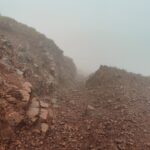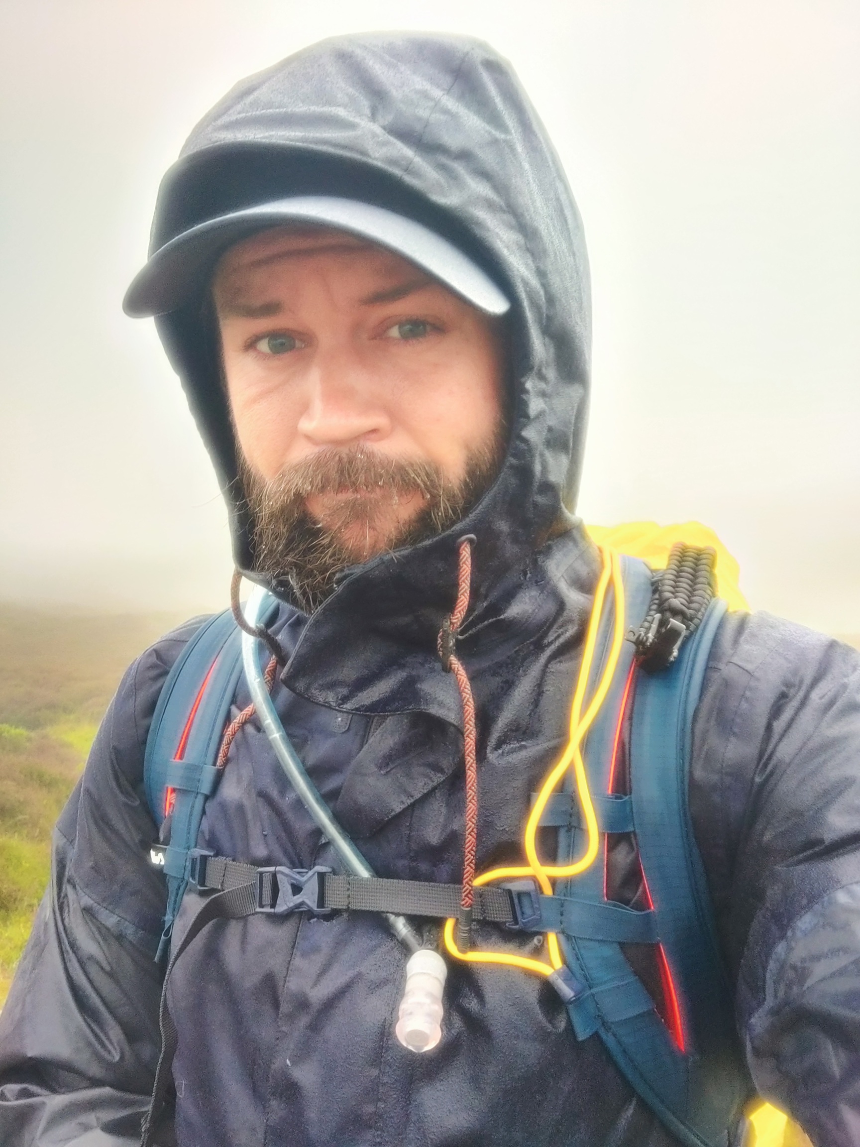I pressed on and eventually reached the tree line, I wasn’t sheltered any longer, Hood up and buff on, we were battling the elements today. I reached Bleaberry Tarn and added an extra layer before scrambling up the winding steep loose scree path to the summit. Once at the summit the wind was turned up a notch or two and I had to hold on while I checked the map to get my bearings. I pressed on along the ridge with very poor visibility, strong wind and stinging rain. Using my maps, trial and error and my sense of direction I managed to navigate my way, the harsh wind was whipping the rain sideways at me, I stumbled over rocks made invisible by the thick clag, stumbling along what I prayed was the correct path. ‘this is miserable’ I thought. ‘Why am I doing this?’ I immediately heard myself… then had a word: