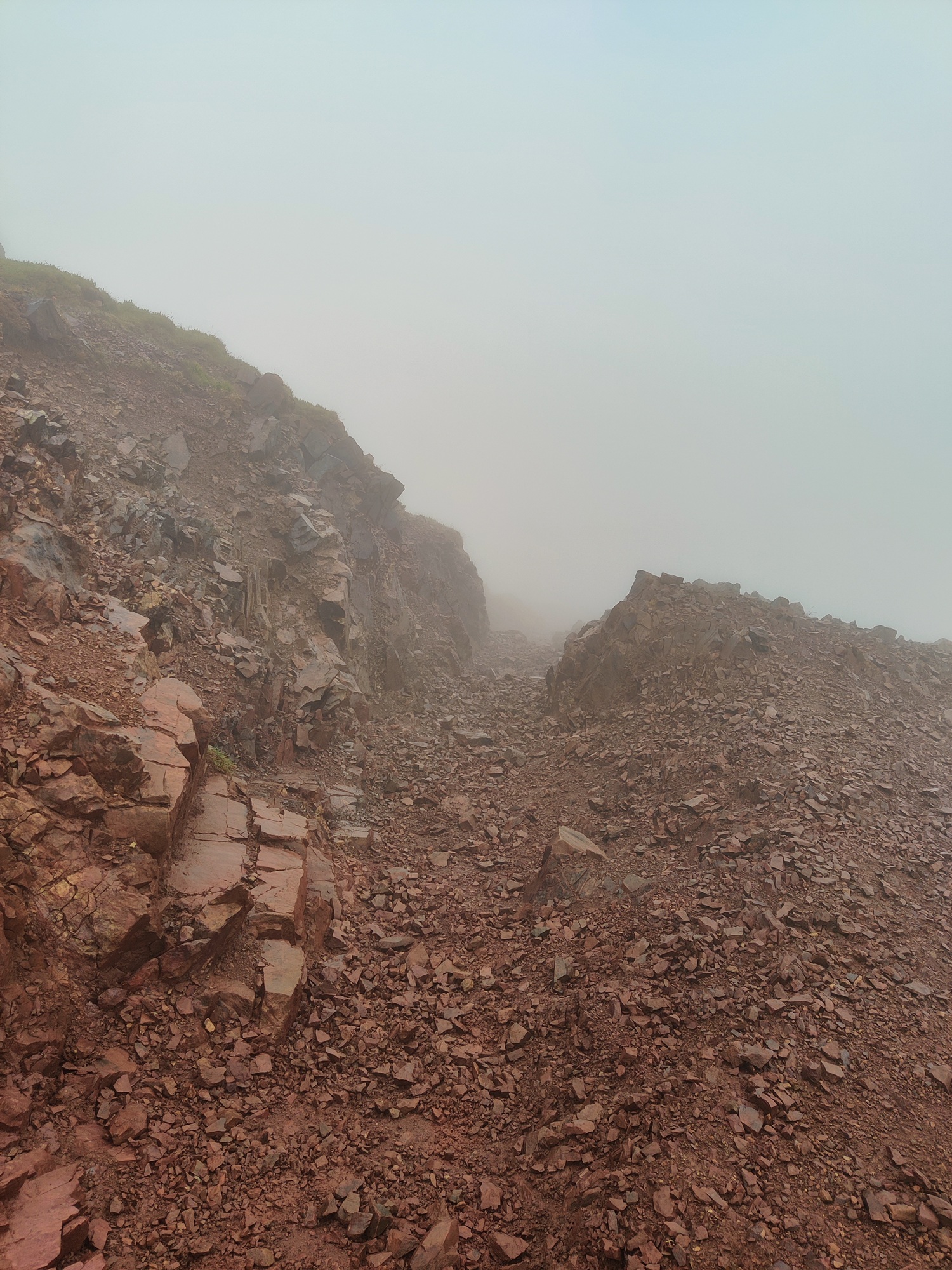 Inevitably morning arrived, I wasn’t anywhere near ready for it, but Fells needed hiking. I swung my legs round and jumped off the top bunk, the lad beneath me was reading his big book again, I mumbled morning and went for a tinkle. Chucking my clothes on I glanced at the window which was foggy from condensation, six sweaty blokes breathing will do that I guess, I padded over to it and wiped at the glass with my sleeve, nothing changed, the view remained white and foggy… Great! No epic views for me today I thought, I slipped on my shoes and made my way down for breaky. I stuck my head out the door and took a big deep breath of fresh morning air, very moist air that it was. It was hammering it down! I sighed, turned and went for breakfast.